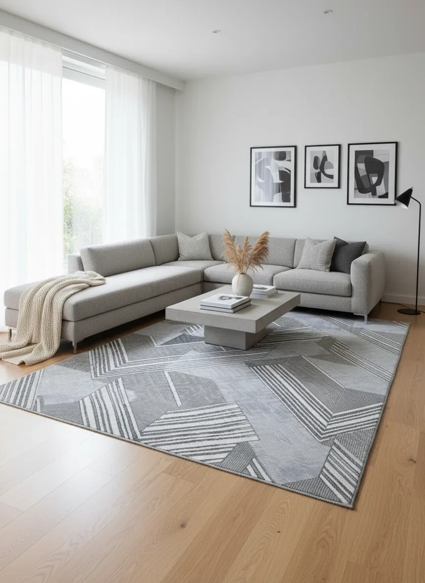 • Jel taban kaymaz yapısıyla şık bir görünüm sunar; robot süpürge dostudur, anti-alerjenik özelliği sayesinde sağlıklı bir ortam sağlar, leke tutmaz yüzeyi ile bakımı kolaydır ve makinede yıkanabilir. Sarar imzalı bu gri renk, geometrik desenli, chevron desenli halı dayanıklı yapısı ve şık tasarımıyla her dekorasyon anlayışına uyum sağlar. Jel taban kaymaz yapısıyla her zeminde güvenle kullanılabilir.