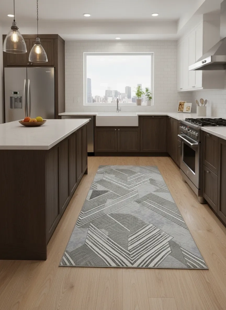 Sarar Klasik Chevron Geometrik Gri Jel Taban Kaymaz Halı