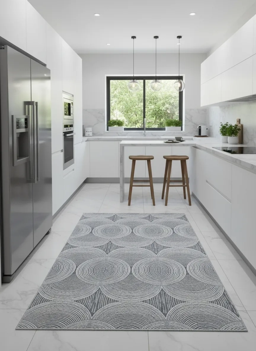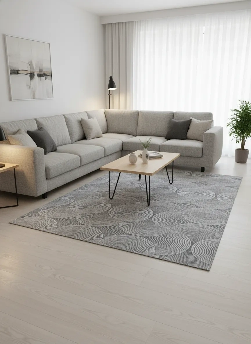 • Jel taban kaymaz yapısıyla şık bir görünüm sunar; robot süpürge dostudur, anti-alerjenik özelliği sayesinde sağlıklı bir ortam sağlar, leke tutmaz yüzeyi ile bakımı kolaydır ve makinede yıkanabilir. Sarar imzalı bu gri renk, daire desenli, klasik desenli halı dayanıklı yapısı ve şık tasarımıyla her dekorasyon anlayışına uyum sağlar. Jel taban kaymaz yapısıyla her zeminde güvenle kullanılabilir.