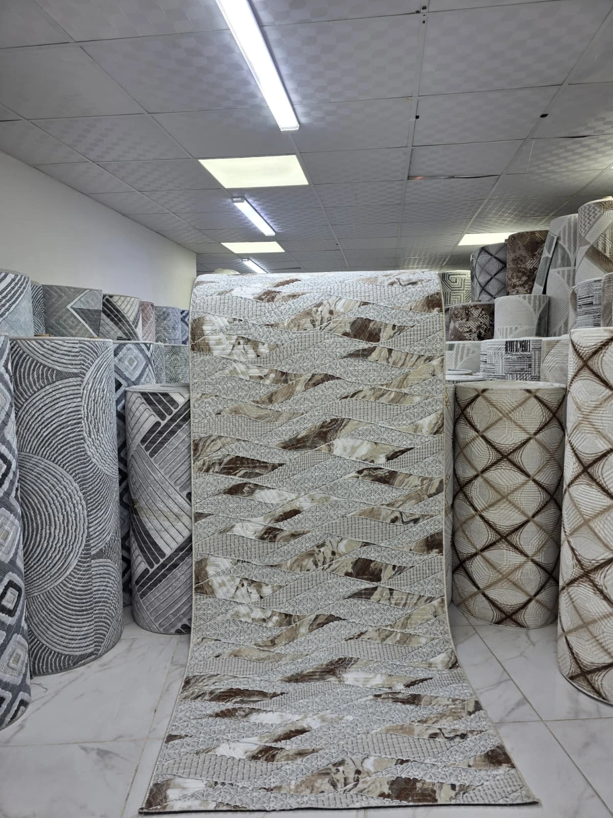 Sarar Lüx Krem Kahve Dalgalı Zikzak Halı