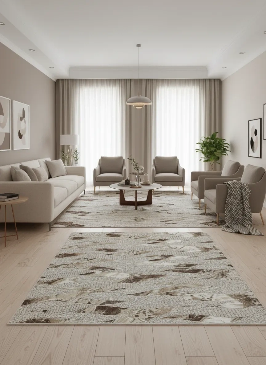 Sarar Lüx Krem Kahve Dalgalı Zikzak Halı, krem-beyaz zemin üzerinde kahverengi tonlarında dalgalanan zikzak şeritleriyle doğanın akışkanlığını ve toprak sıcaklığını salonunuza taşıyan özgün bir tasarım sunuyor. Dalgalı çizgi yapısının oluşturduğu dinamik hareket hissi ve kahve-krem renk kontrastı, mekânınıza hem canlılık hem de sıcak bir doğallık kazandırıyor. Dalgalı halı ve organik desen halı arayanlar için Türkiye'nin en şık ve uygun fiyatlı seçeneklerinden biri olan bu model, krem-kahve renk uyumuyla doğal ahşap ve toprak tonlu mobilyalarla mükemmel bütünleşiyor. Zikzak halı ve akış desenli halı arayanların ilk tercihlerinden biri olan bu ürün, gümüşsuyu halı ve atlas halı alternatifleri arasında öne çıkıyor. Türkiye genelinde 800 TL uygun fiyatıyla kapıya teslim edilmektedir.