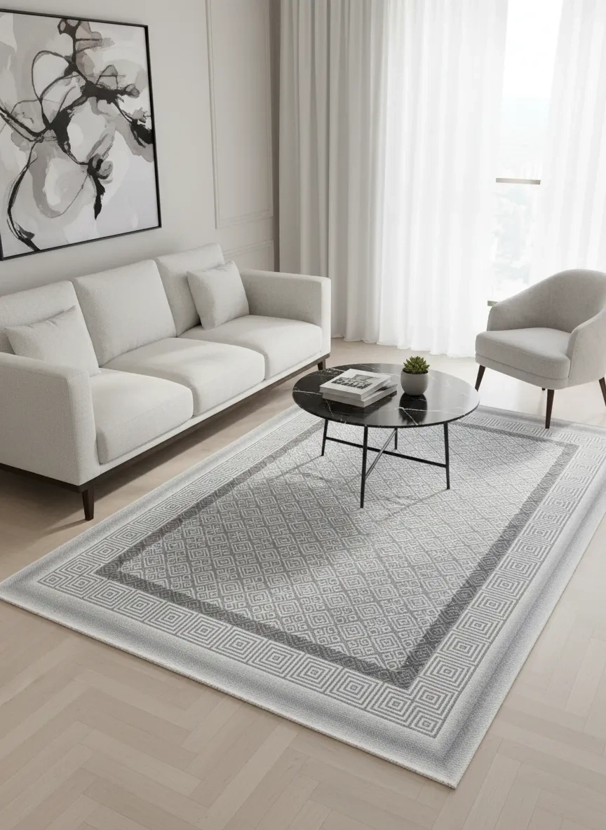 • Bu halı saçaklı yapısıyla şık bir görünüm sunar; robot süpürge dostudur, anti-alerjenik özelliği sayesinde sağlıklı bir ortam sağlar, leke tutmaz yüzeyi ile bakımı kolaydır ve makinede yıkanabilir. Seher imzalı bu gri-beyaz renk, modern halı 200x280 boyutunda ideal ölçüleriyle dayanıklı yapısı ve şık tasarımıyla her dekorasyon anlayışına uyum sağlar.