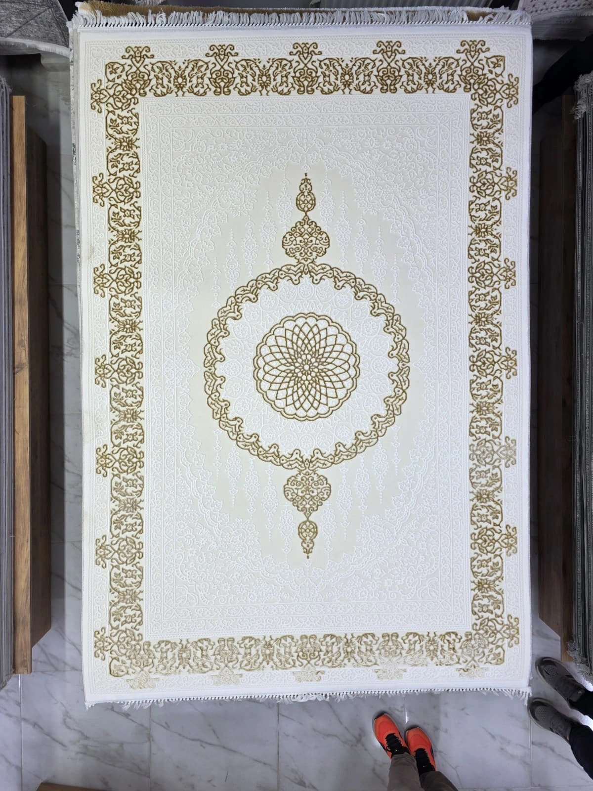 Sevimli Avanos AK095 Beyaz Gold Flosh Madalyonlu Halı 160x230