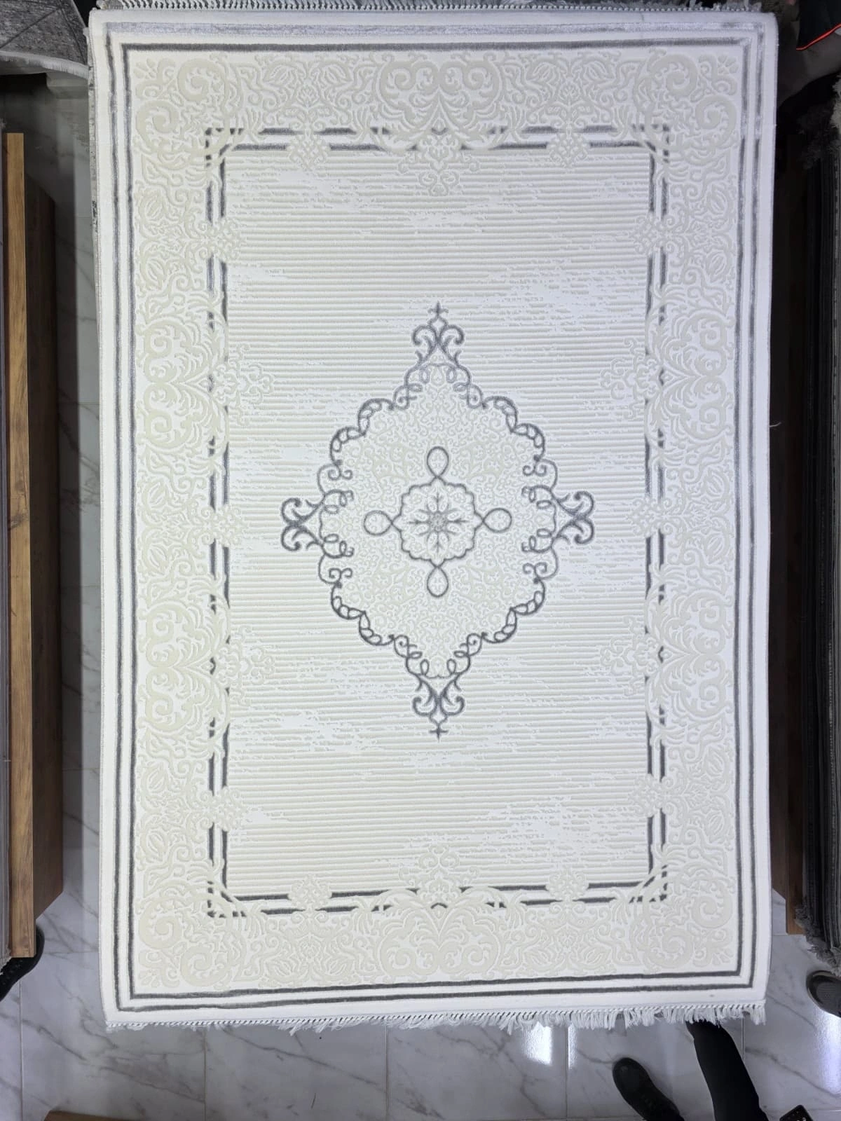 Sevimli Avanos AK121 Beyaz Gri Flosh Elmas Madalyonlu Halı 160x230