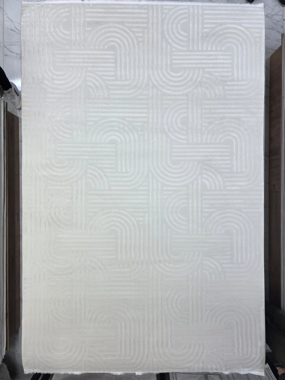 Stil 08374L Krem Halı, iç içe geçen kıvrımlı çizgilerden oluşan labirent deseniyle sadeliği dinamizme dönüştürüyor. Krem zemin üzerinde hafif belirgin kabartmalı motifler, halıya modern ve sanatsal bir kimlik kazandırıyor. Salon, oturma odası ve çalışma odası gibi her mekânda kullanıma uygun olan bu tasarım; Bauhaus, modern minimalist ve Skandinav tarzlarına mükemmel eşlik eder. Beyaz, açık gri ve bej tonlarındaki mobilyalarla kusursuz uyum sağlar. 200x290 cm ölçüsü büyük alanlar için tercih edilebilir. Dayanıklı makine dokuması yapısıyla uzun yıllar kullanım sunar.
