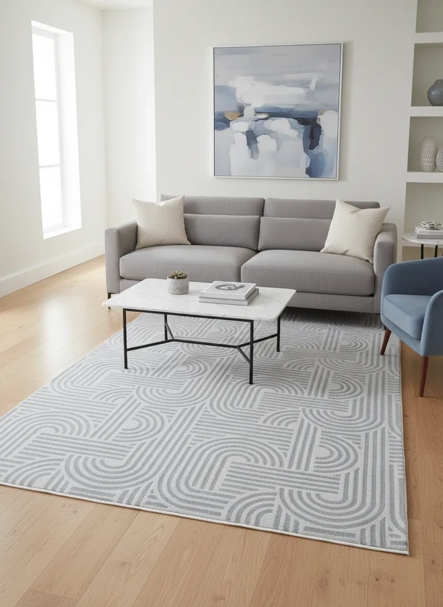 Stil 08374W Gri Halı, krem zemin üzerinde açık gri tonlarında kıvrımlı labirent motifler içeren sofistike bir geometrik tasarıma sahip. Birbiriyle bağlantılı kıvrık çizgilerden oluşan bu labirent dokusu, halıya modern sanat eseri niteliği kazandırıyor. Minimalist, modern ve Bauhaus tarzlı dekorasyonlarda öne çıkan bu halı; beyaz, açık gri, krem ve doğal ahşap mobilyalarla mükemmel uyum sağlar. Ofis, oturma odası, salon ve çalışma odası gibi her alanda şık bir zemin kaplama sunar. 200x290 cm ölçüsü ve makine dokumasının güçlü yapısıyla uzun yıllar kullanım sunar.