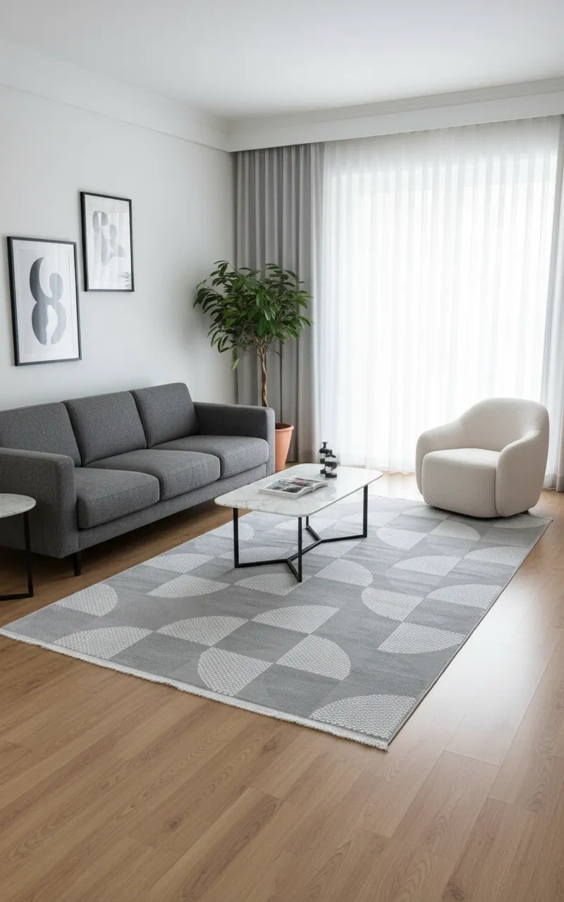 Veseo Armoni 40175A Krem-Açık Bej Halı, aynı modelin diğer renklerinden farklı olarak sıcak krem ve açık bej tonlarında büyük yarım daire ve tam daire formlarının kare bloklar içinde yerleştirildiği sıcak Bauhaus bir kompozisyon sunar. Krem ve bej tonlarının doğal uyumu, mekânlara hem modern hem de cozy bir zemin atmosferi katar. Oturma odası, yemek odası, antre, koridor ve yatak odası gibi her alanda kullanılabilen bu halı, özellikle Skandinav, minimalist ve doğal tarzda dekore edilmiş mekânlarda mükemmel bir zemin sunar. Bej, krem, beyaz ve ahşap tonlu dekorasyonlarla uyumludur. Veseo Armoni serisinin kaymaz tabanlı kaliteli makine dokuması, 150x220 cm ölçüsüyle güvenli ve uzun ömürlü kullanım sunar.