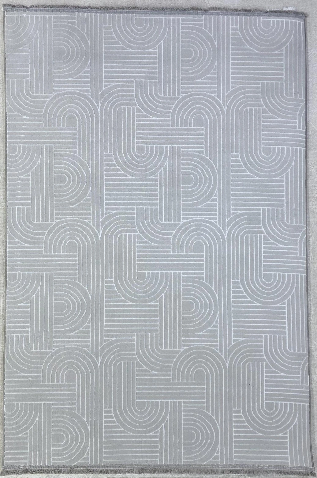 Veseo Asil NU1302 Açık Gri-Beyaz Halı 150x220 | Ark Labirent Çizgili Modern Halı