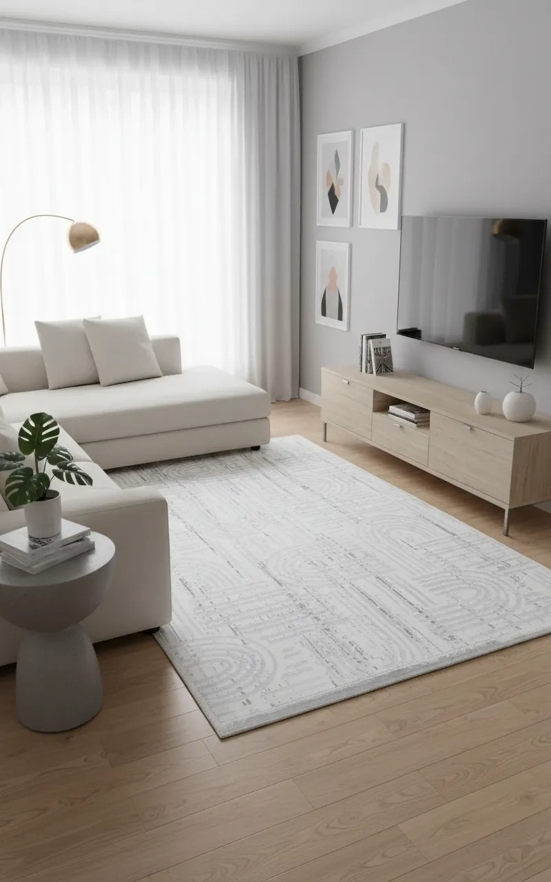 Veseo Asil NU1332 Açık Gri Halı, gri zemin üzerinde dinamik yay, çizgi ve labirent formlarının özgür bir kompozisyon oluşturduğu modern ve enerjik bir tasarım sunar. Kaligrafik hatlara benzeyen soyut çizgiler, halıya sanatsal bir ifade ve görsel hareketlilik kazandırır; oturma odası, yemek odası, antre ve koridor gibi her alanda çarpıcı bir zemin deneyimi yaratır. Soyut çizgi deseni, hem modern hem endüstriyel hem de Bauhaus tarzda dekore edilmiş mekânlarda güçlü bir zemin ifadesi sunar. Gri, beyaz, siyah ve antrasit tonlu dekorasyonlarla mükemmel uyum sağlar. Veseo Asil serisinin kaymaz tabanlı kaliteli makine dokuması, 150x220 cm ölçüsüyle güvenli ve uzun ömürlü kullanım sunar.